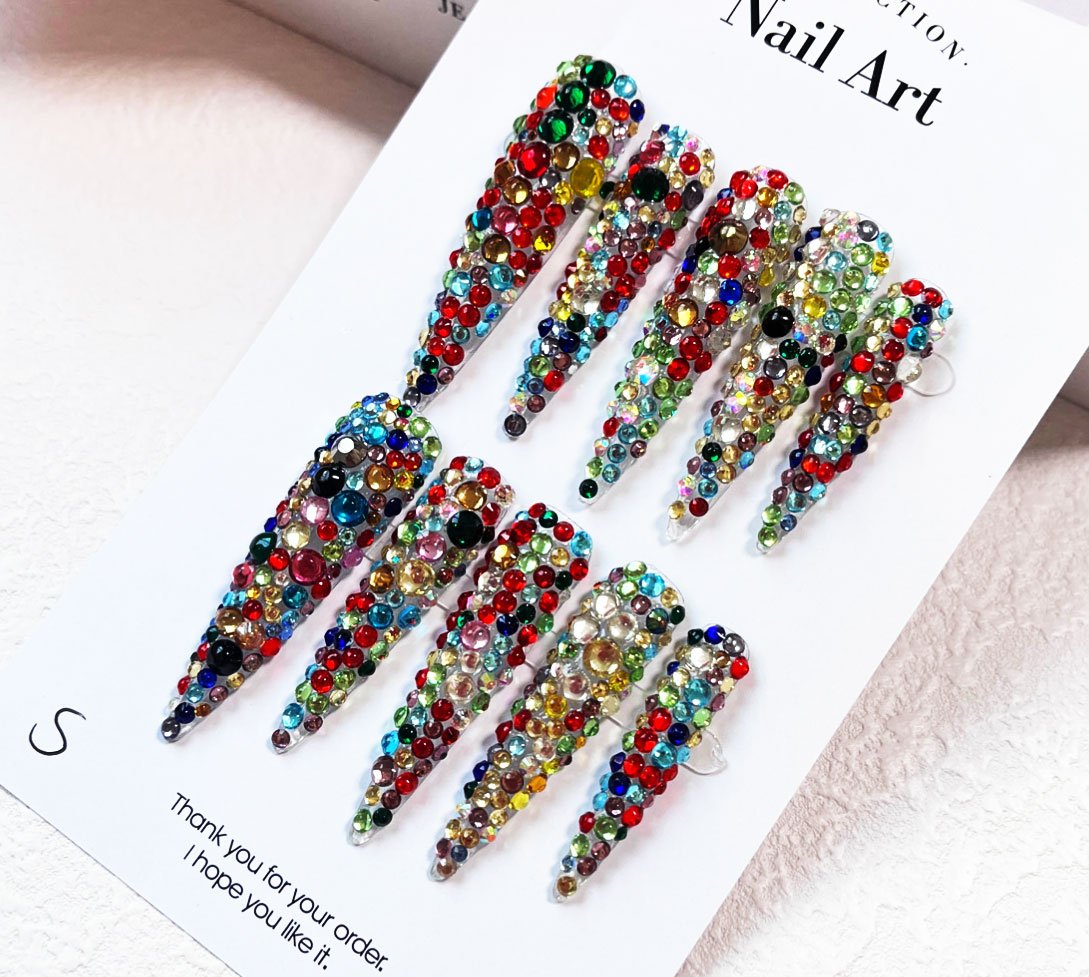 Be the first to review “Rainbow full-diamond three-dimensional long-style pointed-toe nail polish”