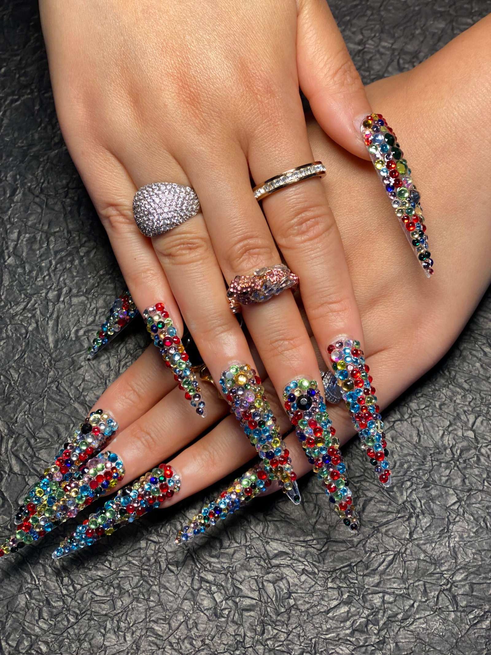 Rainbow full-diamond three-dimensional long-style pointed-toe nail polish