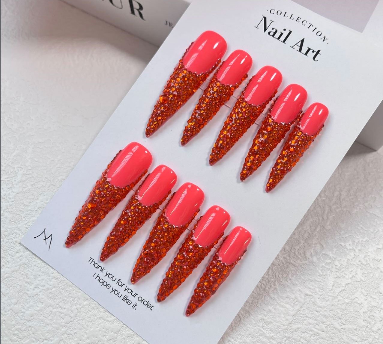 Be the first to review “Red diamond gradient long-style pointed nail art sticker”